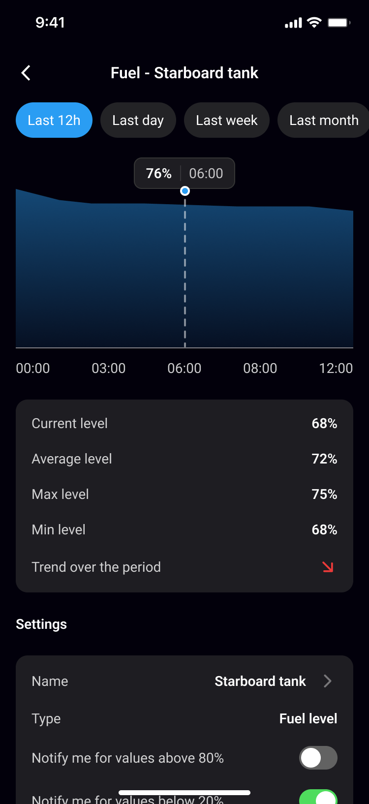 If no cellular network is available, the HUB continues to operate locally. It will keep collecting data, monitoring onboard systems, and storing information securely. As soon as a connection is restored, all stored data is automatically synced to the cloud and your app — so you never miss a thing.