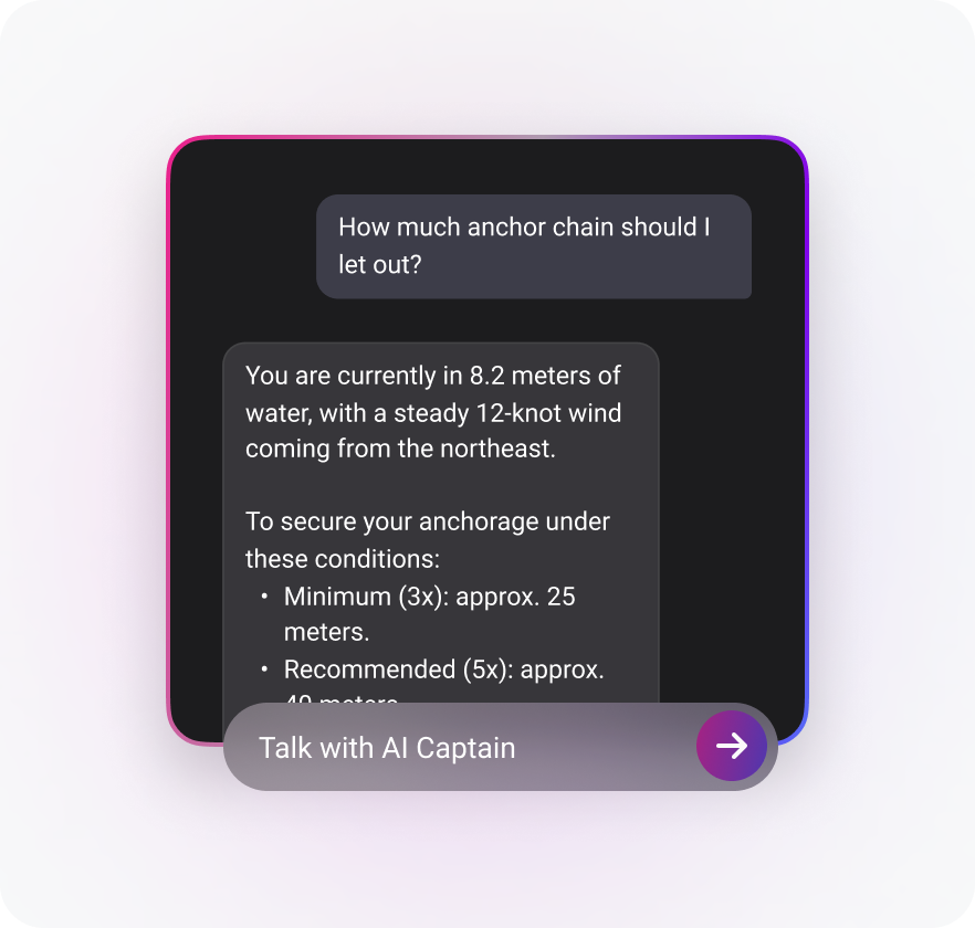 Command decisions with clarity. Your AI Captain interprets vessel intelligence instantly, transforming complex data into actionable insight when moments matter most.