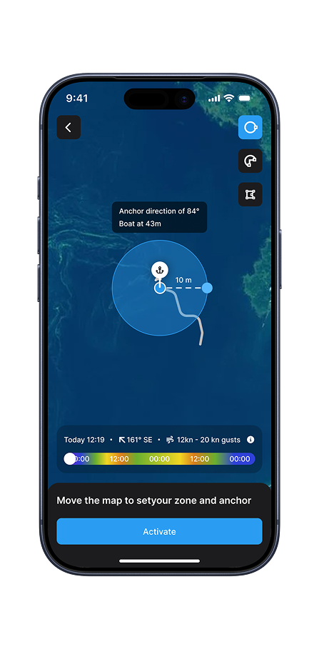 Instant alerts for anchor drag, low battery, intrusion, grounding risk.