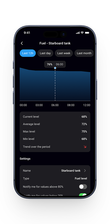 All events trigger clear, real-time notifications on your phone so you can react quickly and keep your boat safe, even when it’s out of sight.