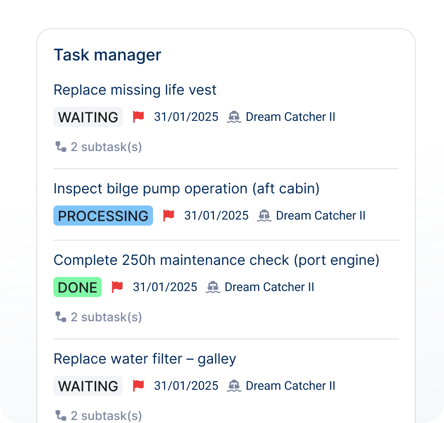 Maintain excellence without compromise. Streamlined workflows transform maintenance operations into systematic precision, ensuring peak vessel performance always.